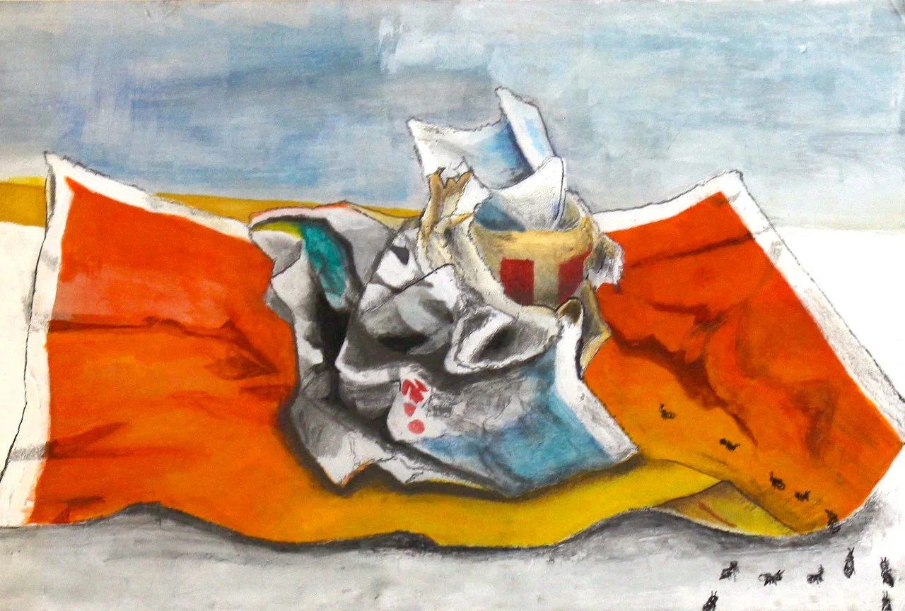 Newpapers, 2016, Mixed Media with Gouache, Ink, and Gesso, 43cm x 29cm